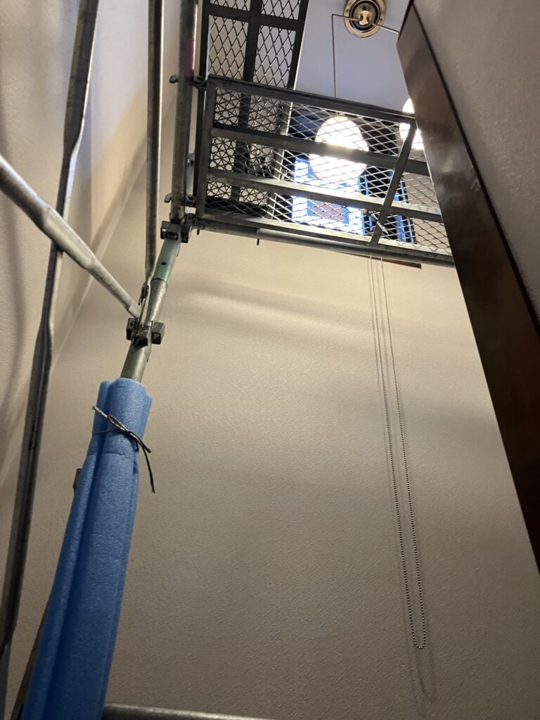 今回は、階段上部のジャロジー窓の開閉を電動から手動に切り替える工事をさせていただきました。