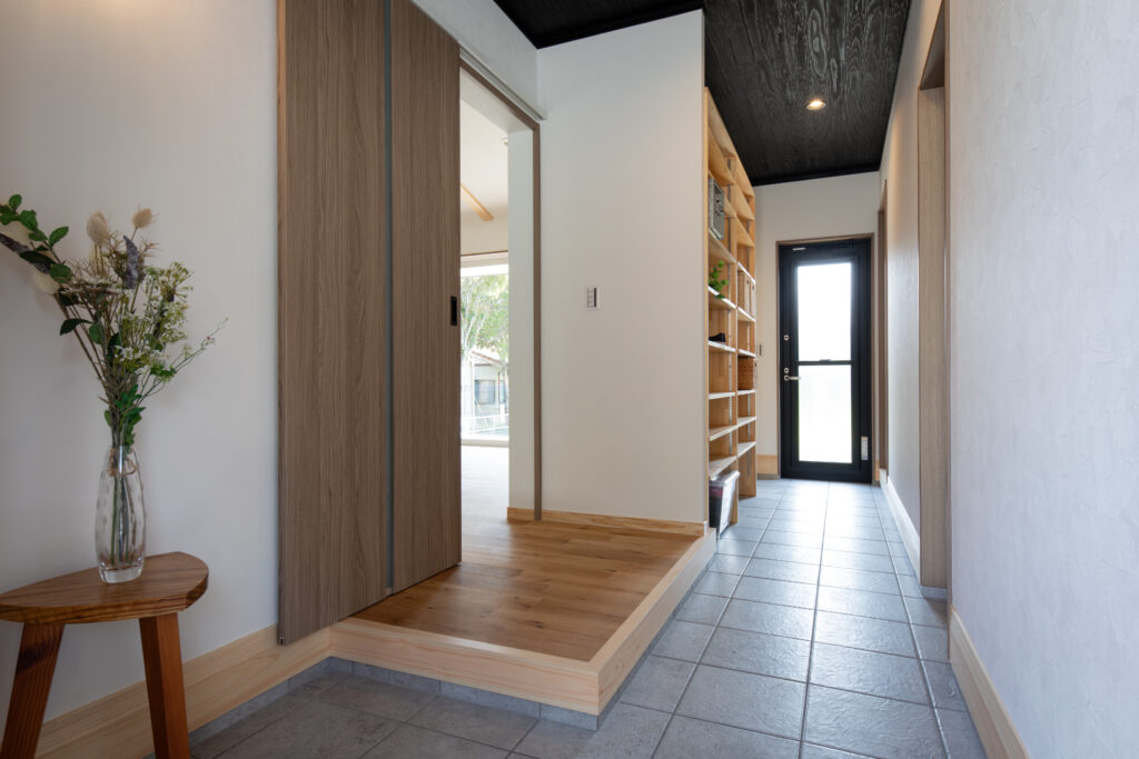 通り土間とは、日本の伝統的な土間の一種で、玄関から靴を脱がずにそのまま奥の部屋や庭まで移動できる廊下状の空間。